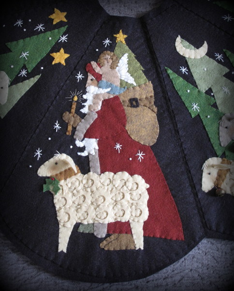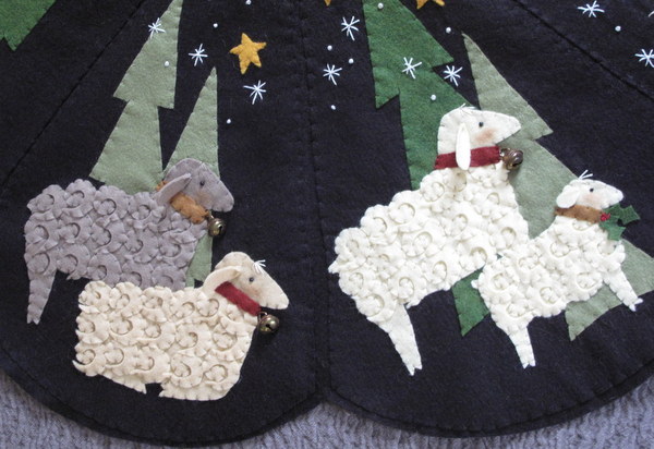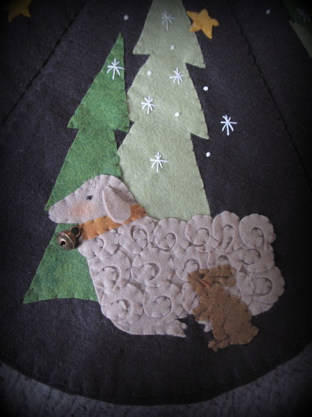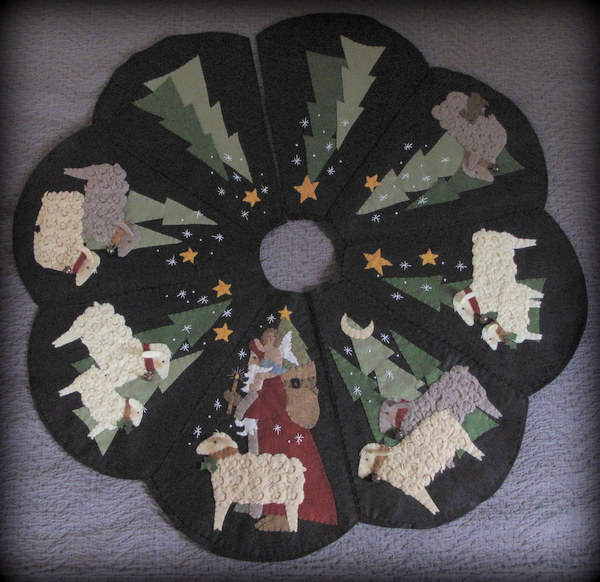 I have segmented the appliquéd pieces into easily managed "pie shaped" pieces that get sewn to the backing once complete